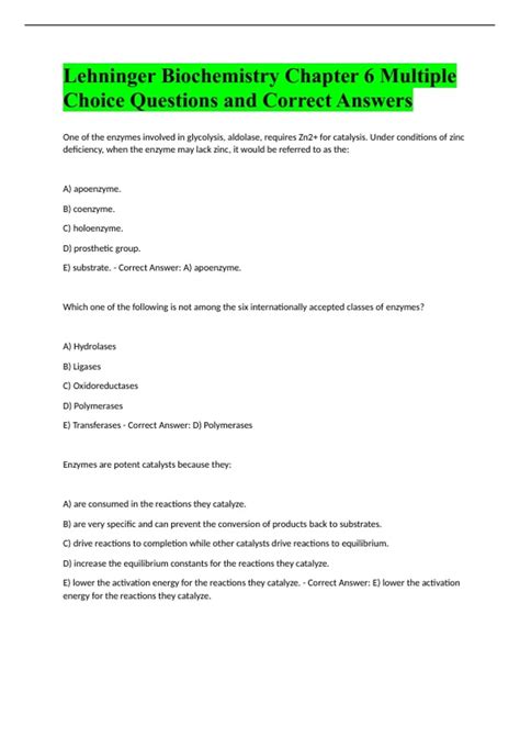 Download Biochemistry Lehninger Multiple Choice Questions With Answers Kindle Editon